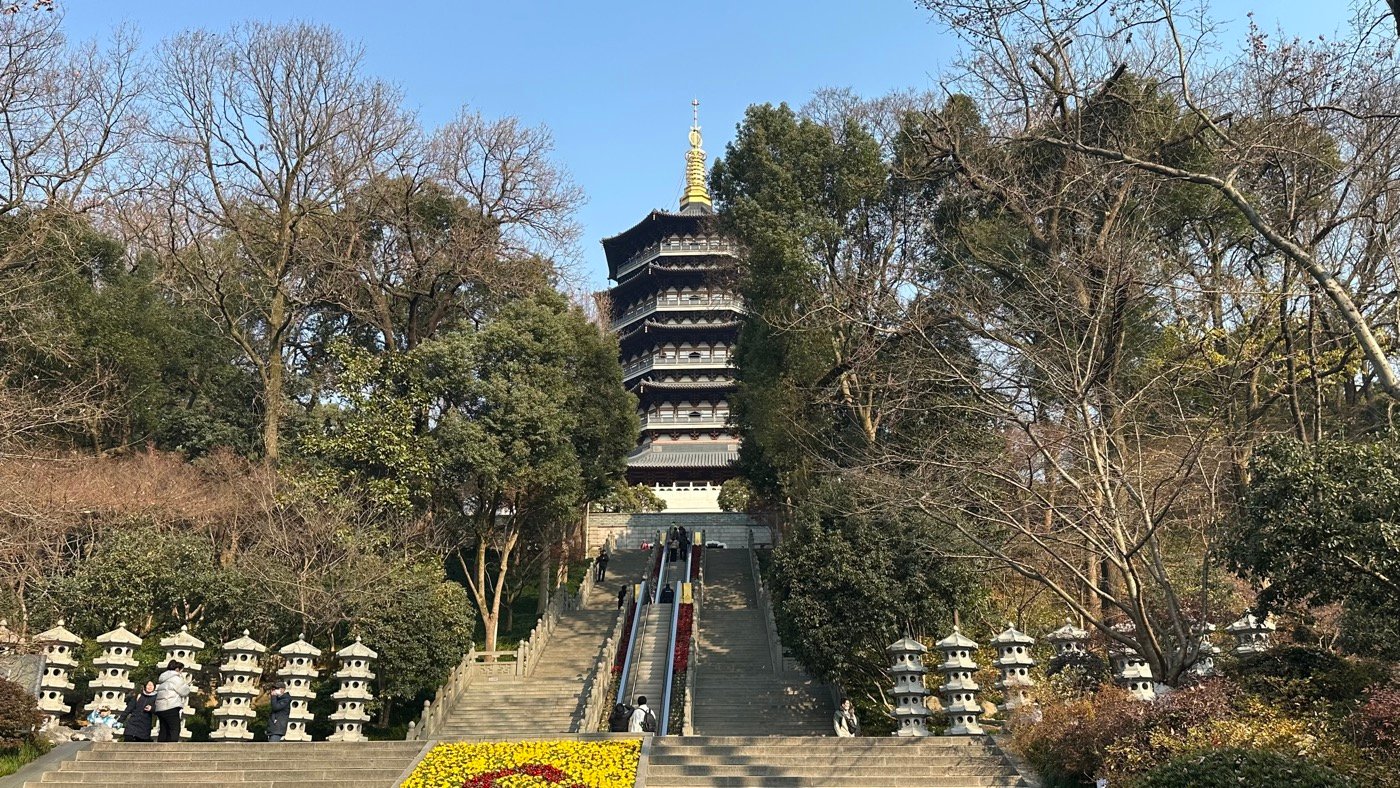 這座塔從一開始就是傳奇與讚歎。塔身內部結構是磚石砌成,外層為木質的亭閣樓台,簷角掛有104支鐵鈴鐺,風吹起的時候,鈴聲悠揚迴盪在杭州西湖邊,從西元一千年開始便是當地的風景名勝,如今也是遊客如織。