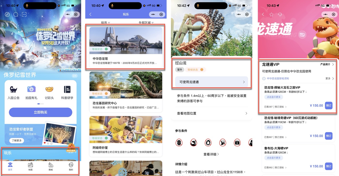 以中華恐龍園而言,手機除了觀看全景地圖之外,有各個遊玩項目的簡單介紹,最重要是可以查看目前等候狀態及步行導覽,還能直接購買優速通。每一項目是150元人民幣,不論冷門項目或者熱門的4D過山車,都是相同價錢。因此如果現場排隊一兩個小時,相當值得推薦,花點錢避免排隊耗費寶貴的遊玩時間。
