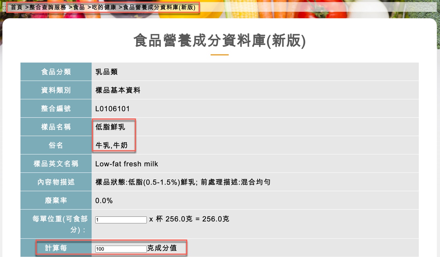 有了全脂的計算基礎,就可以直接比較低脂鮮乳。