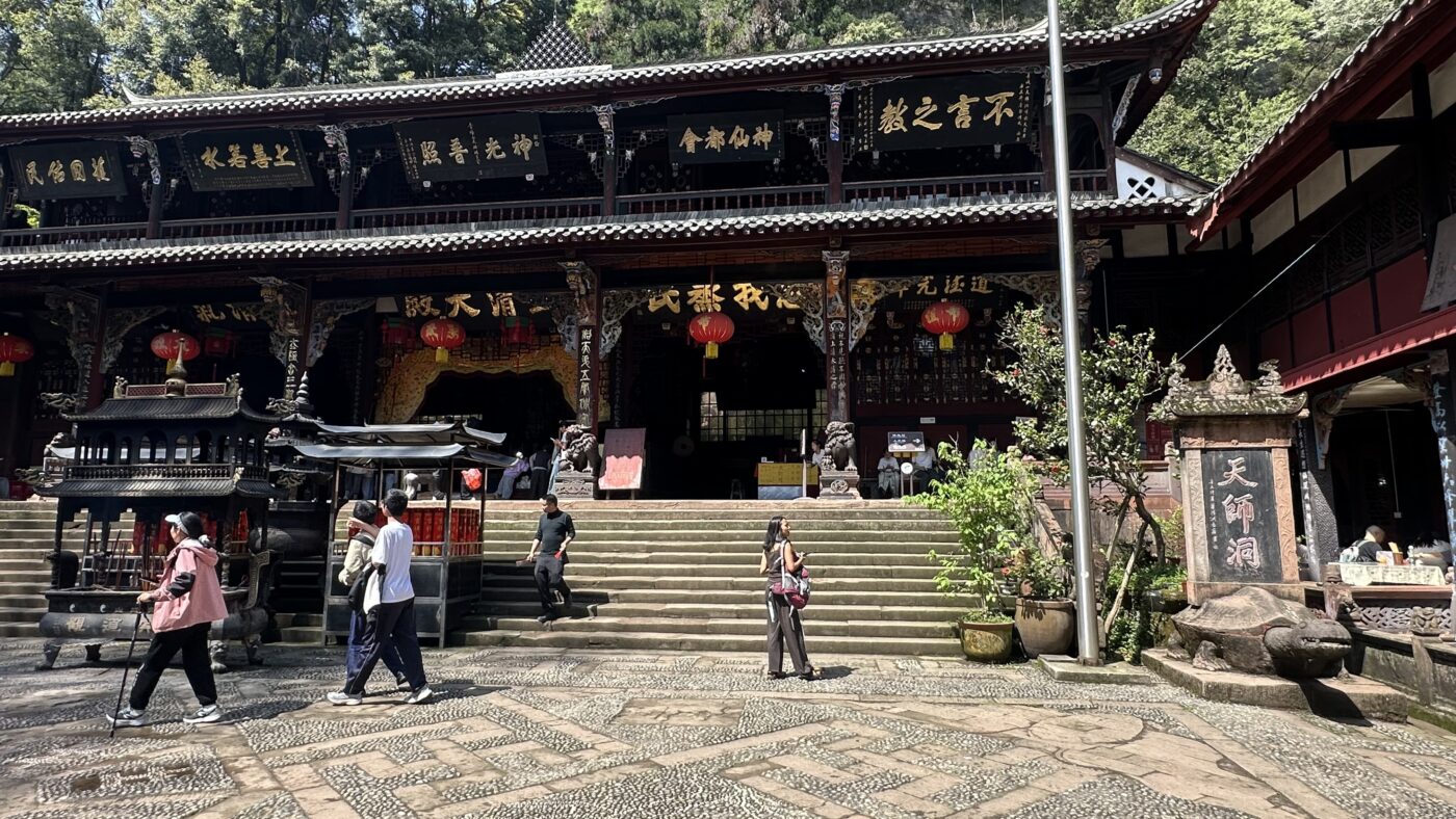 建福宮通常被視為遊覽青城山的起點,始建於唐代,歷史悠久。宮內最著名的是一副長達394字的對聯,被稱為「青城一絕」,內容氣勢宏大,許多遊客都會特地停下來細讀。