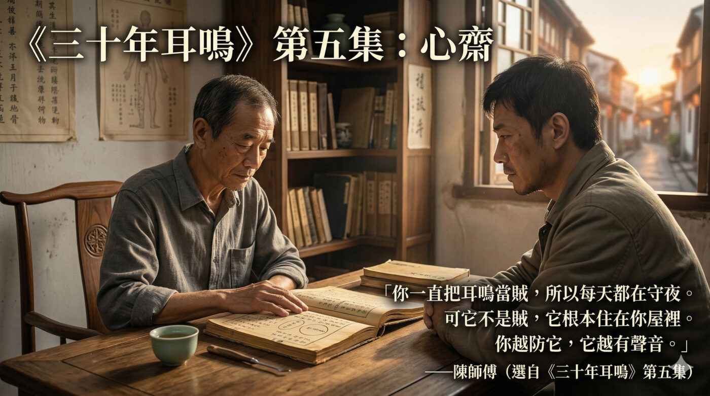 「我以前在吳江掏耳朵,掏了將近三十年,」他繼續說,語氣很平,像在說別人的事,「總以為沒有我清不出來的髒東西。後來我自己病了一場,躺了幾個月,什麼工具都用不了,只能讀書。讀著讀著,就去學了中醫。」他頓了頓,「那時候才慢慢知道,有些聲音不是從耳朵裡來的。」