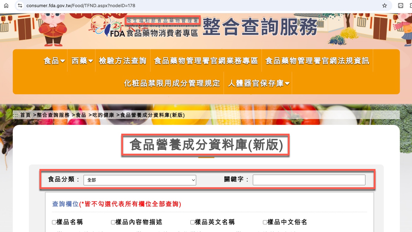 它來自衛生福利部食品藥物管理署建置的食品營養成分資料庫(新版),如果你曾經想查「100公克白飯多少熱量?」「一顆雞蛋蛋白質幾克?」答案幾乎都在這裡。